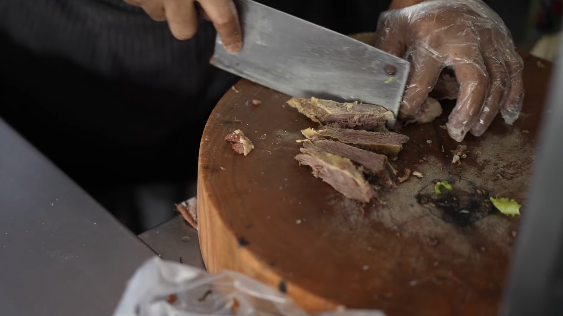 調理風景を覗かせてもらうと長時間煮込まれて柔らかそうな牛肉をかなり大きく分厚目にカット