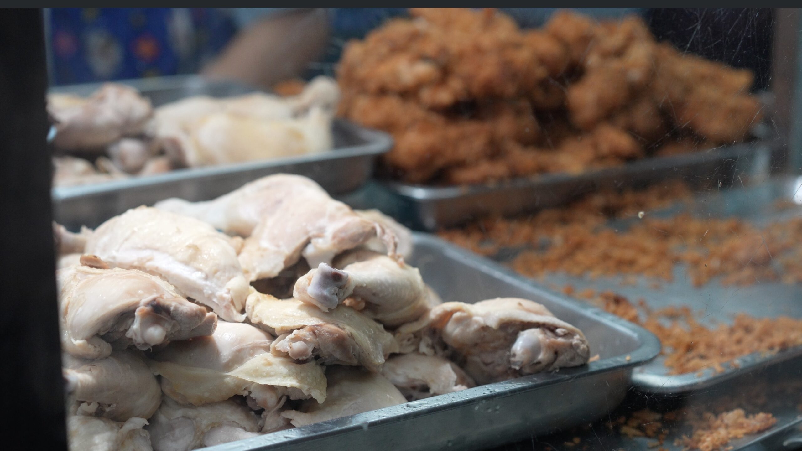 お店のショーケースには見るからにジューシーそうな鶏肉と揚げたチキン