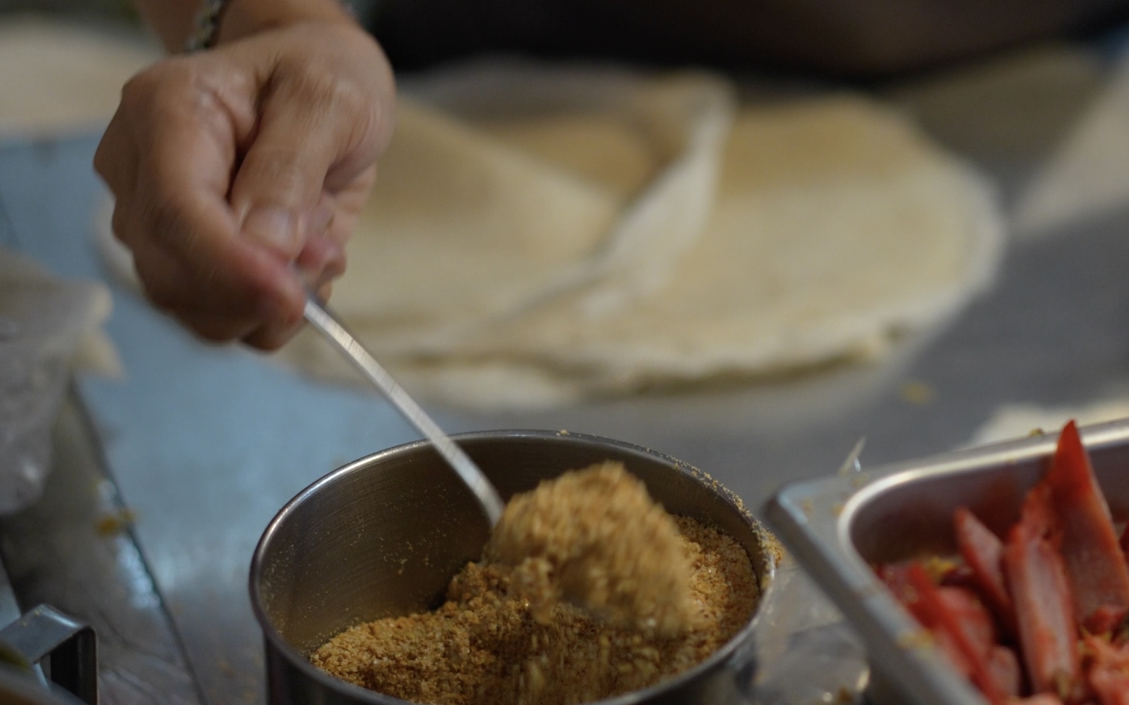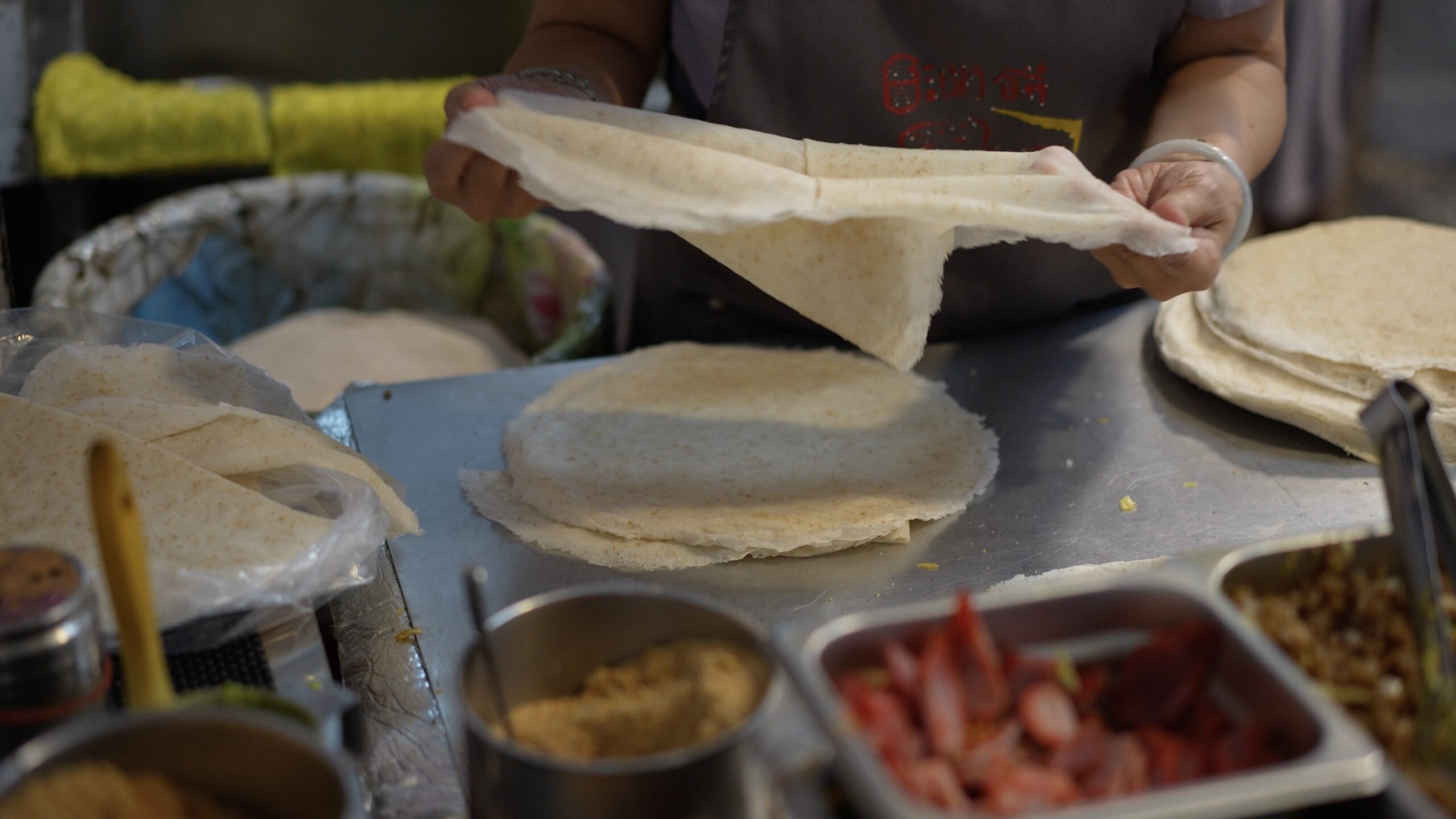 潤餅とは薄く焼いたもちもちのクレープ生地に野菜やお肉を入れて包んだ台湾のクレープです