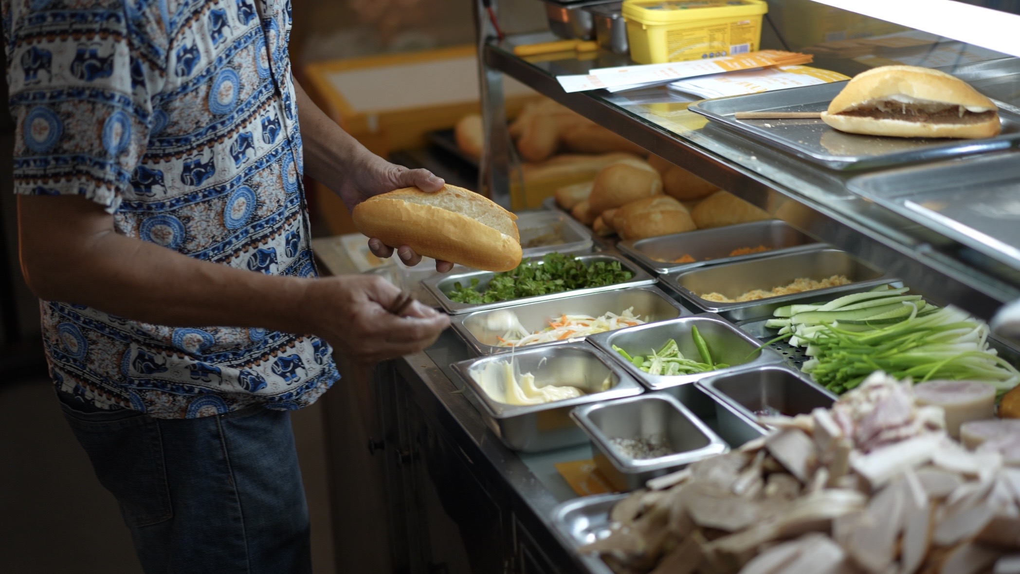 ベトナムの温暖な気候で改良されたサクサクなフランスパンにお肉や野菜をたっぷりと挟んだ国民食の「バインミー」