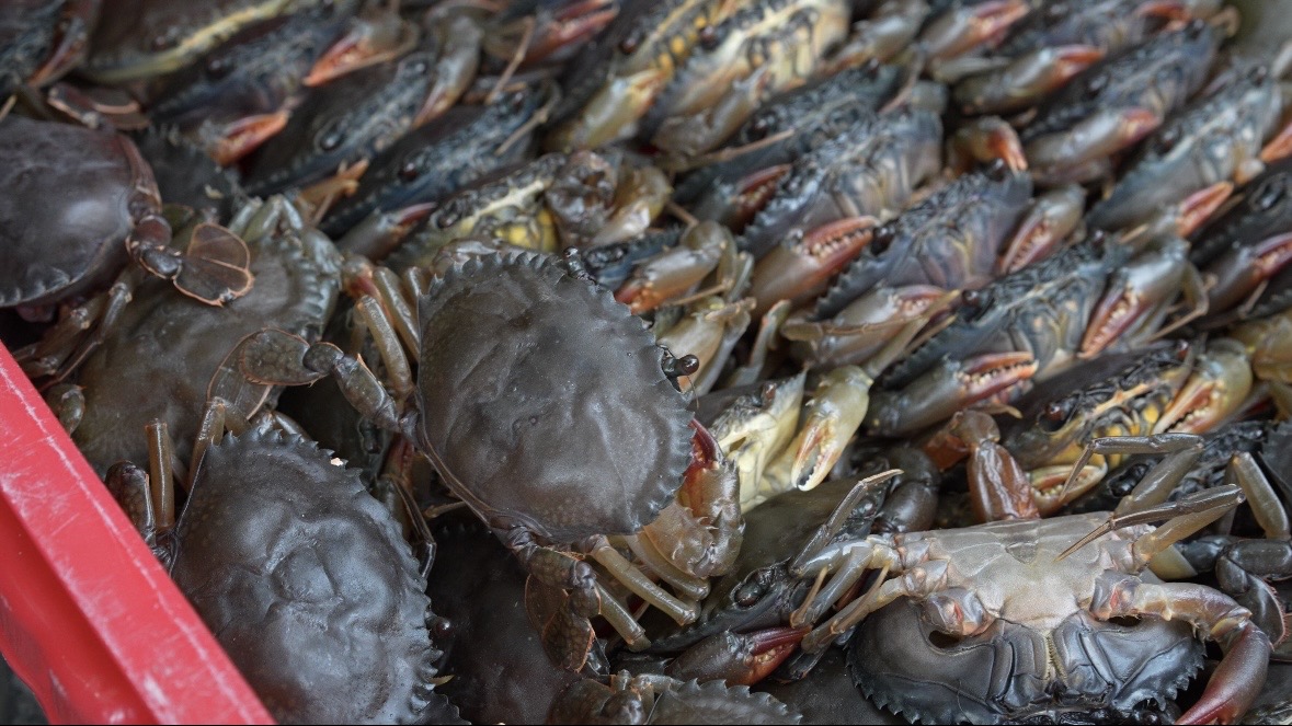 近づいてみるとまだ生きているので動きまわる蟹も数匹