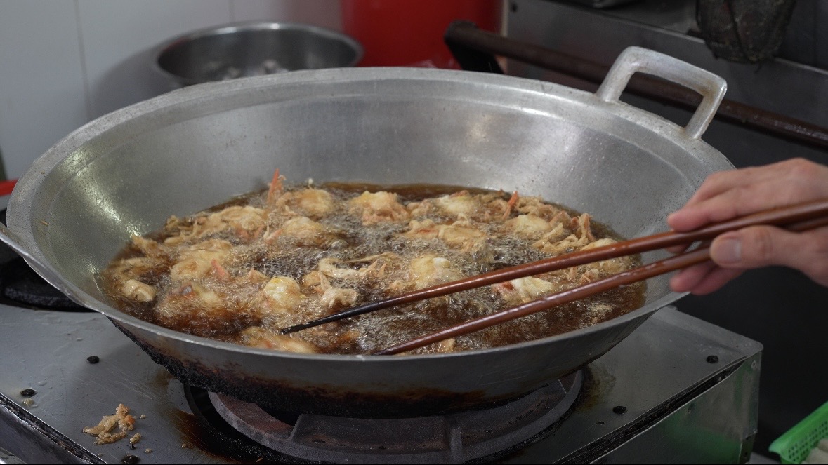 この蟹はソフトシェルと言われる脱皮したてで柔らかいので人気のメニューはその蟹を豪快に上げた蟹の唐揚げ